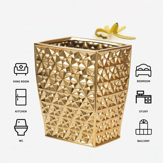 Luxurious and Shining: Golden Ribbed Trash Can, a New Highlight in Home Storage